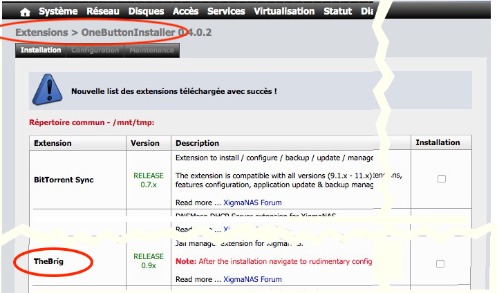 Tshikave. — Certes. Cependant, il y a maintenant une ligne de plus dans l’onglet Extensions en haut de la page. Et crois-moi, il y a installé une part essentielle ; TheBrig